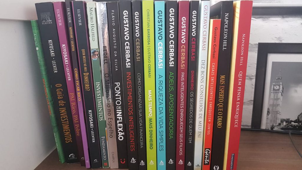 Vou colocar uma imagem abaixo de alguns livros que eu ja li sobre Educação Financeira, alguns abordam assuntos semelhantes e outros são praticamente livros que abrem sua mente de uma maneira que não tem volta. Não vou colocar todos, senão fica ruim de ver na foto!