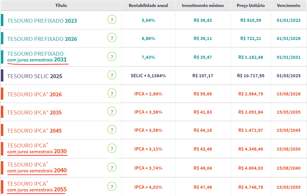 Você recebe sua renda duas vezes ao ano. É possível comprar títulos com diferentes datas de pagamentos e tornar os pagamentos mais recorrentes, de três em três meses, mas lembre-se de sempre verificar as taxas, se elas são atrativas para o que você procura.