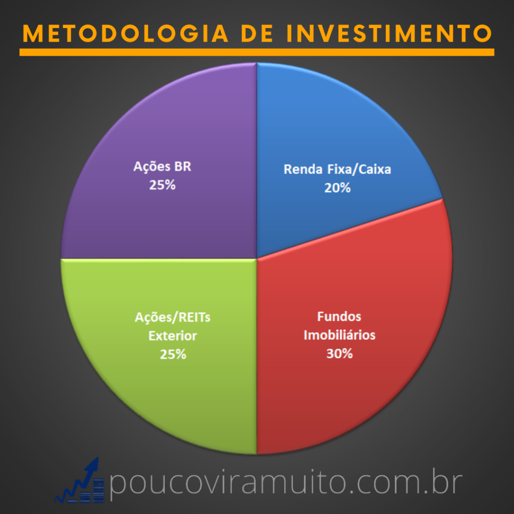 Essa é a Metodologia de Investimento que adoto na minha vida pessoal e vou adotar aqui no Blog. Depois de 15 anos no mercado, fui criando minha própria Metodologia (que já mudou muito desde o início) e através da experiência, fui ajustando ela. Sigo também exemplos de grandes investidores, para ter uma referência, além de que eu sempre vou adaptando com o tempo ou em momentos da minha vida (exemplo, nascimento dos meus filhos). Acredito que nada pode ser permanente em um mundo que muda tanto.