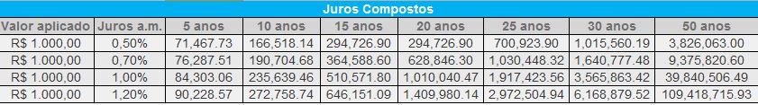 Obs: Outros fatores como frequência em que se investe faz a diferença, taxa de administração, taxa de performance, ou custo do aporte (se possuir), acabando prejudicando na rentabilidade dos Juros Compostos.