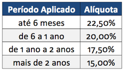 A tributação ocorre de forma regressiva, conforme tabela abaixo: